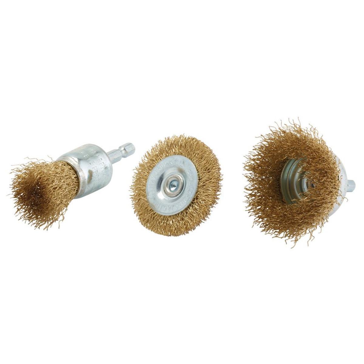 Jeu de 3 brosses métalliques à fils ondulés en acier laitonnés