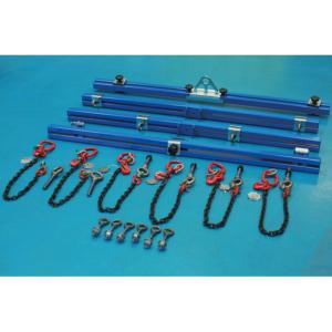 • Trois traverses, avec supports de levage réglables (2 pour le levage à 4 points, 3 pour le levage à 6 points).