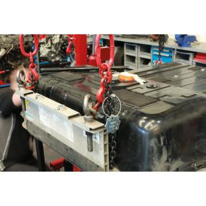 • Six élingues chaînes réglables, plus 6 boulons à œil M12, M16 et M20 pour la fixation aux points de levage des batteries des véhicules électriques.