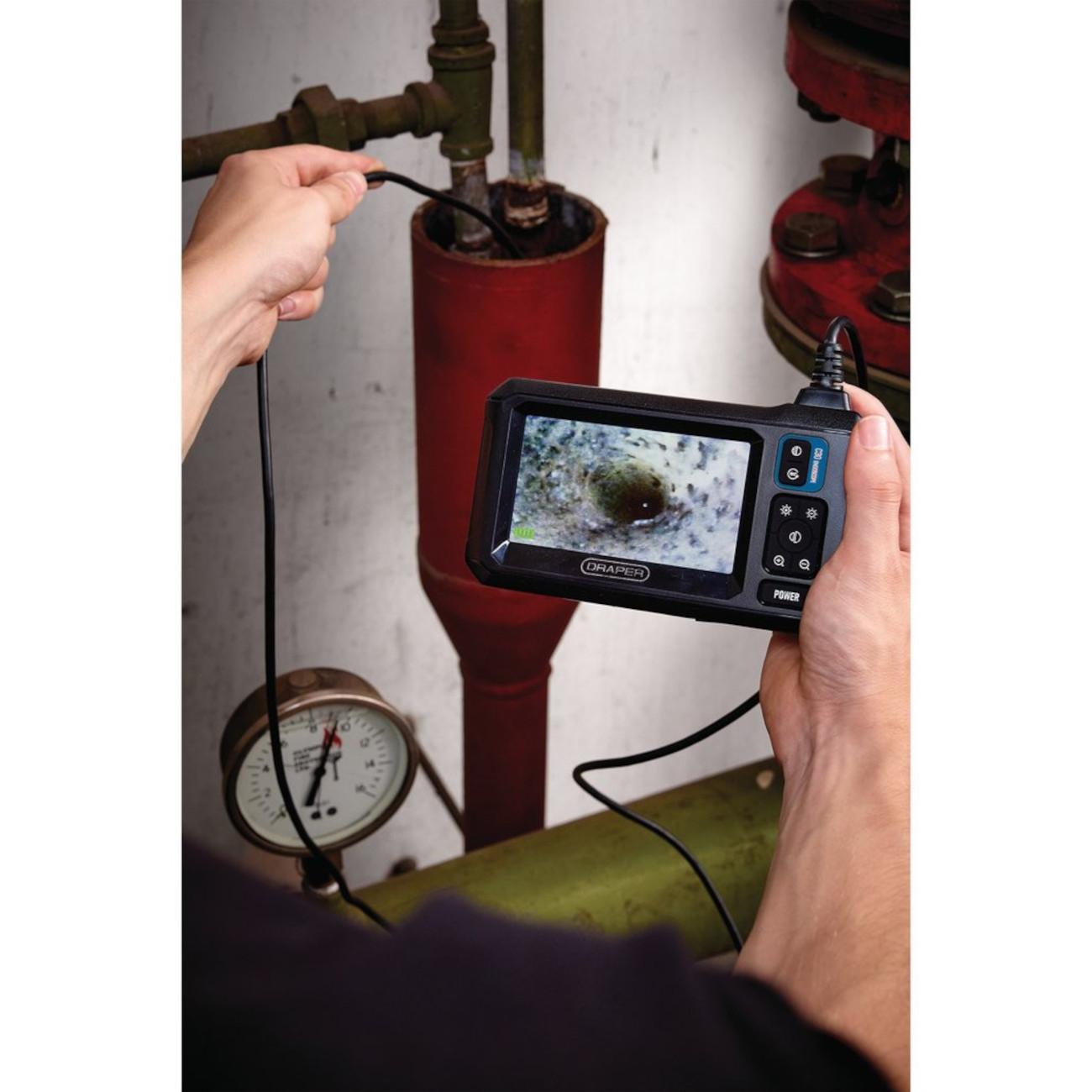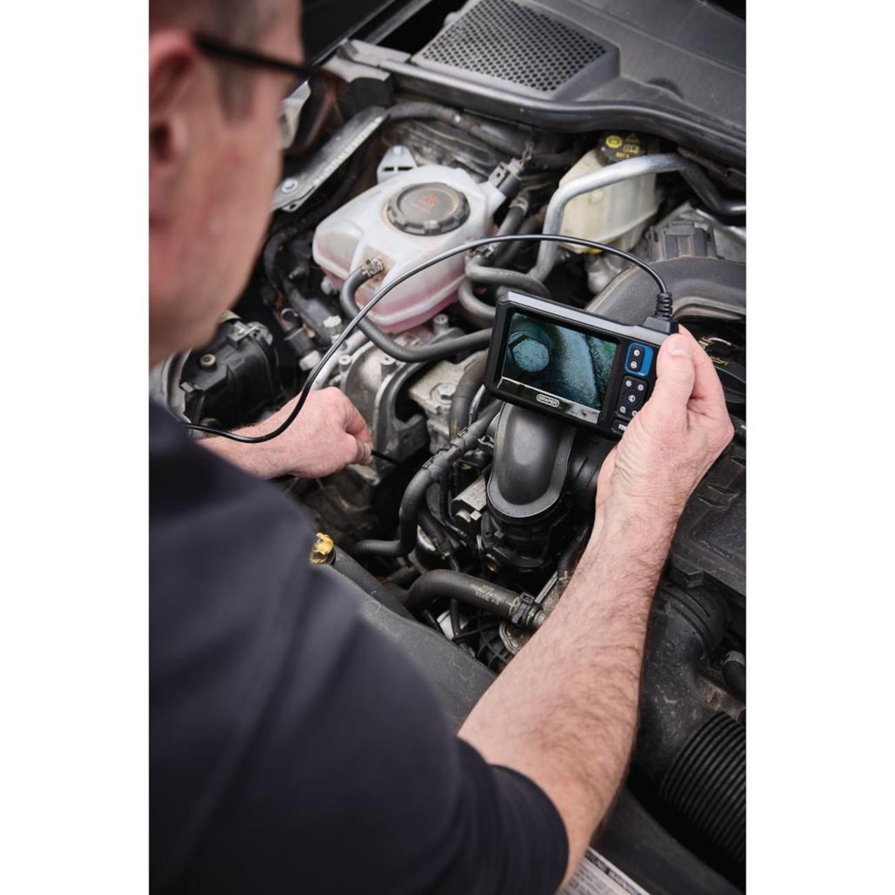 Cette caméra d'inspection de 8 mm est dotée d'un câble semi-rigide, ce qui la rend idéale pour examiner les cavités murales, les tuyaux et autres espaces étroits, ainsi que pour inspecter de près les moteurs et les pièces de machines difficiles à atteindre.