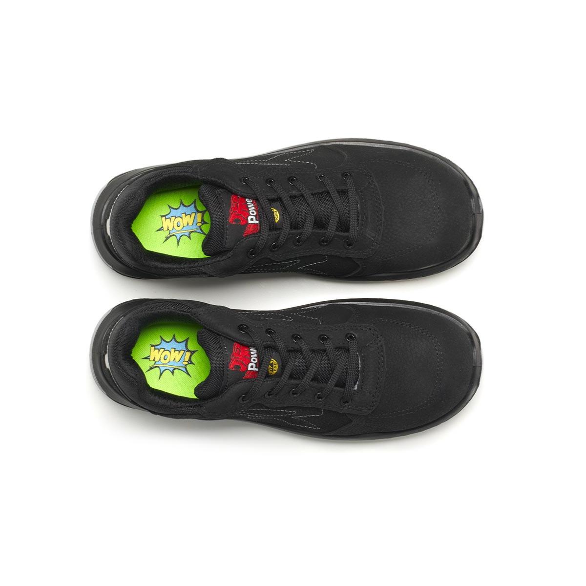 Chaussures de travail légères noires en cuir nubuck naturel foulonné, hydrofuge.
