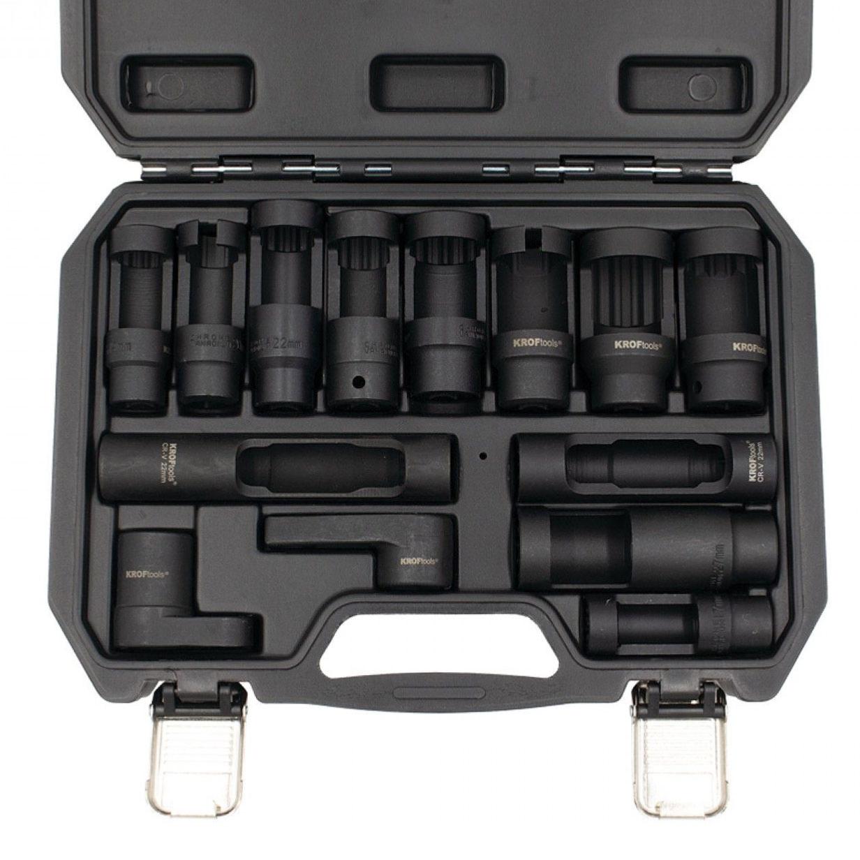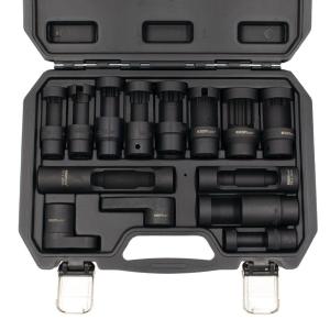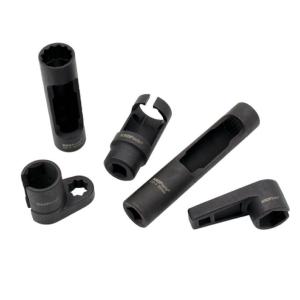 Une gamme complète de douilles ouvertes spécialisées pour une application automobile, notamment l'installation et le retrait des sondes lambda et des injecteurs diesel.