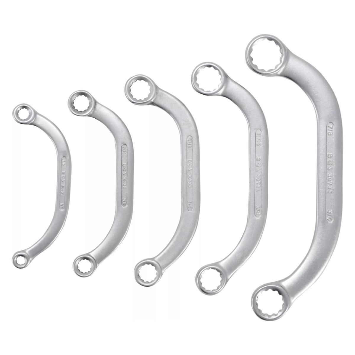 JEU DE 5 CLES POLYGONALES A OEIL, COURBEES DEMI LUNE EN POUCES