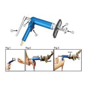 • Choisissez un adaptateur adapté pour travailler sur le piston de l'étrier de frein. Montez-le sur l'adaptateur magnétique (1). Raccordez l'outil à un circuit d'air comprimé en veillant à ce que celui-ci ne dépasse pas 8 bars de pression (Fig. 1).