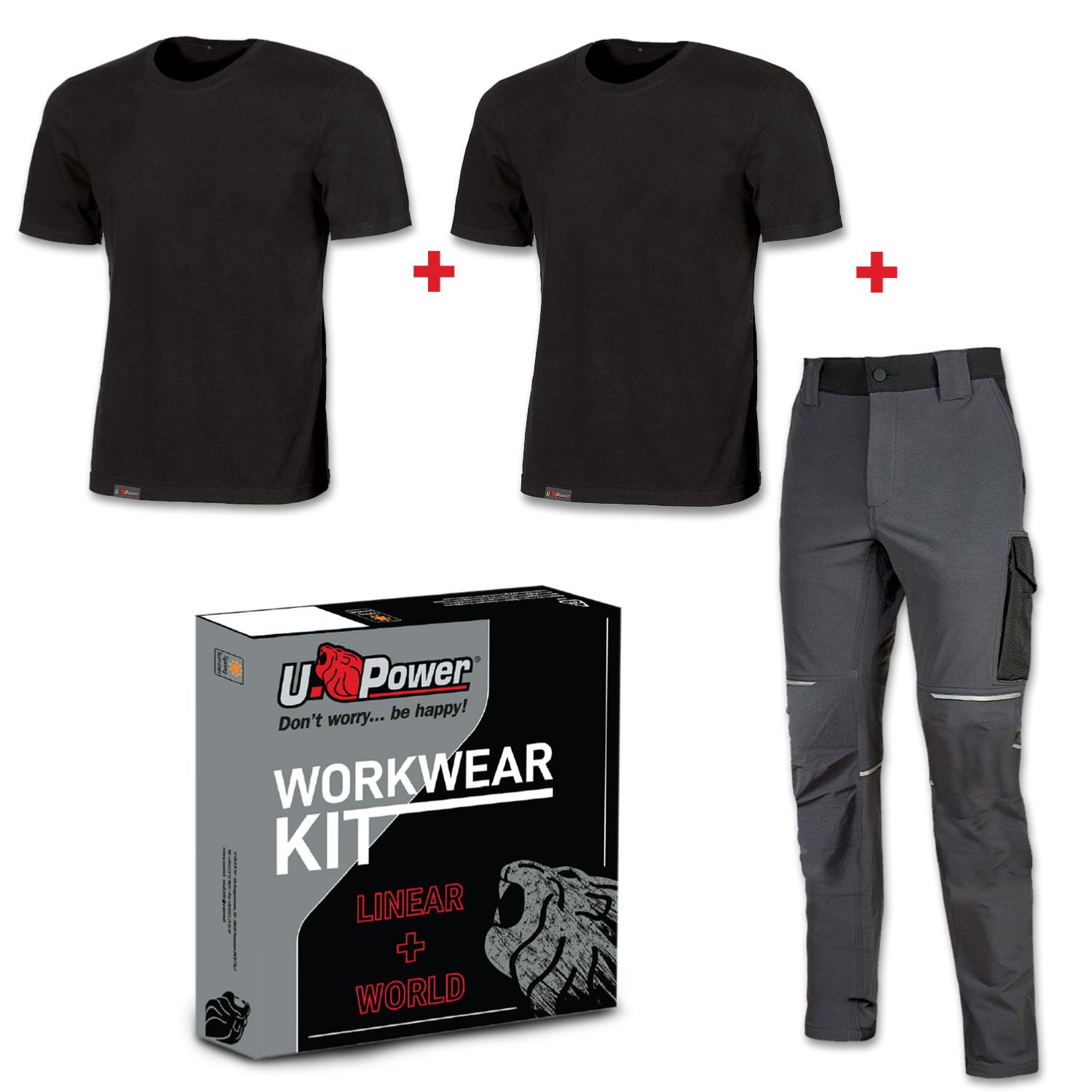 Le kit U-POWER est composé d'un pantalon gris modèle WORLD et de deux t-shirts noirs modèle LINEAR.
