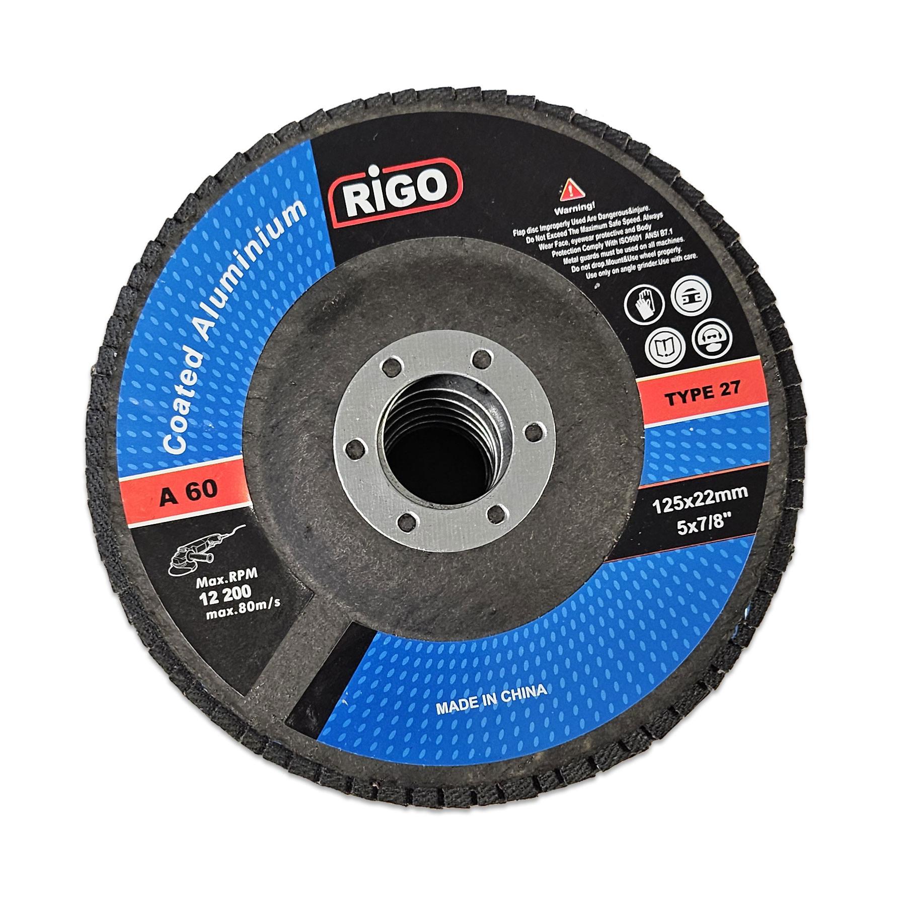 Diamètre : 125 mm, porte-outils : 22,23 mm, grain 60, vitesse de travail : 80 m/s (12 200 rpm, tr/min).