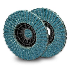 Disques plats à lamelles abrasives au zirconium collées sur un support en fibre de verre.