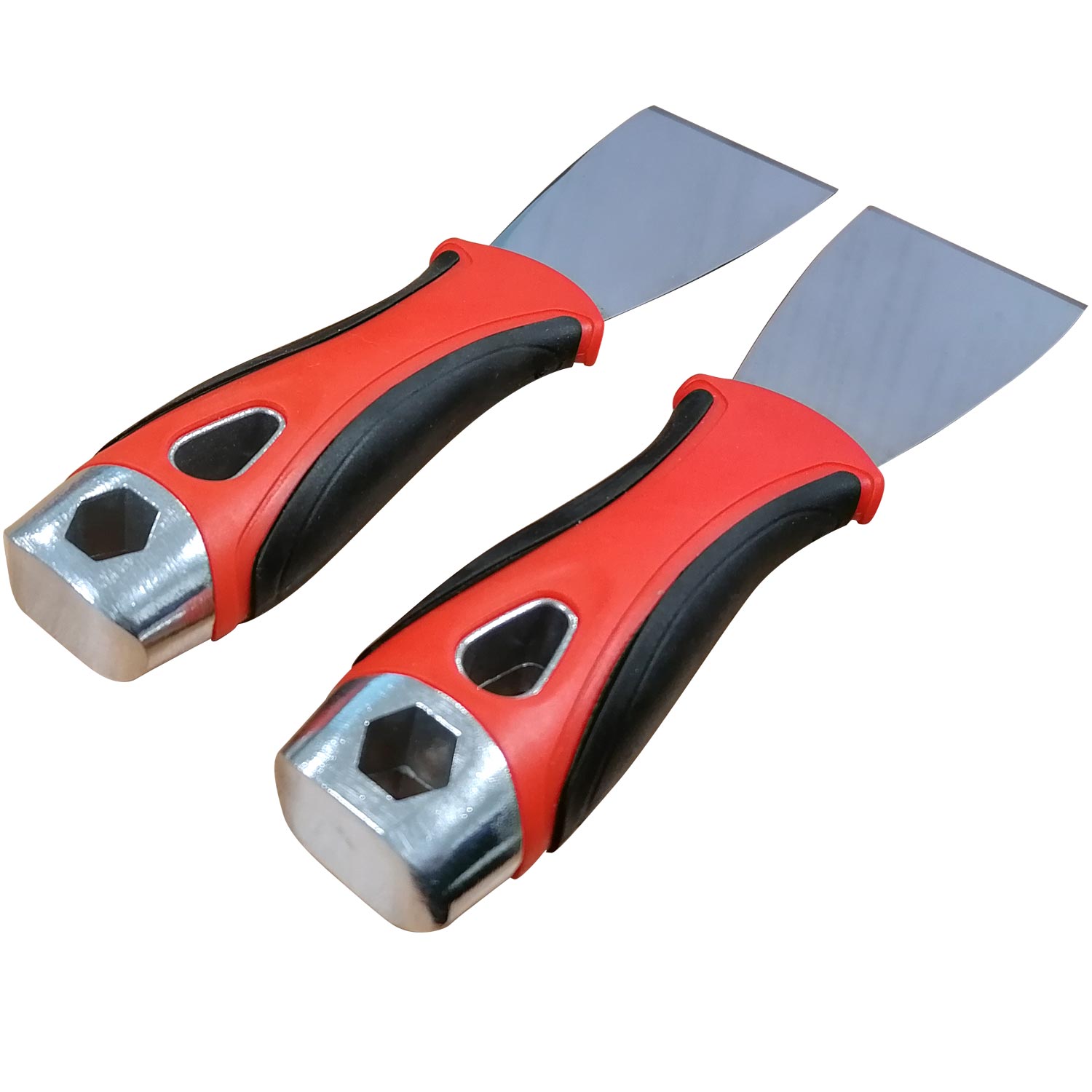 LOT DE 2 GRATTOIRS A FRAPPER INOX AVEC POIGNEE CAOUTCHOUC 50 x 210 mm