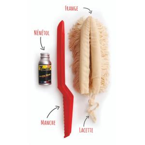 Frange en coton imprégnée d'un liquide lustrant, capte et retient la poussière.