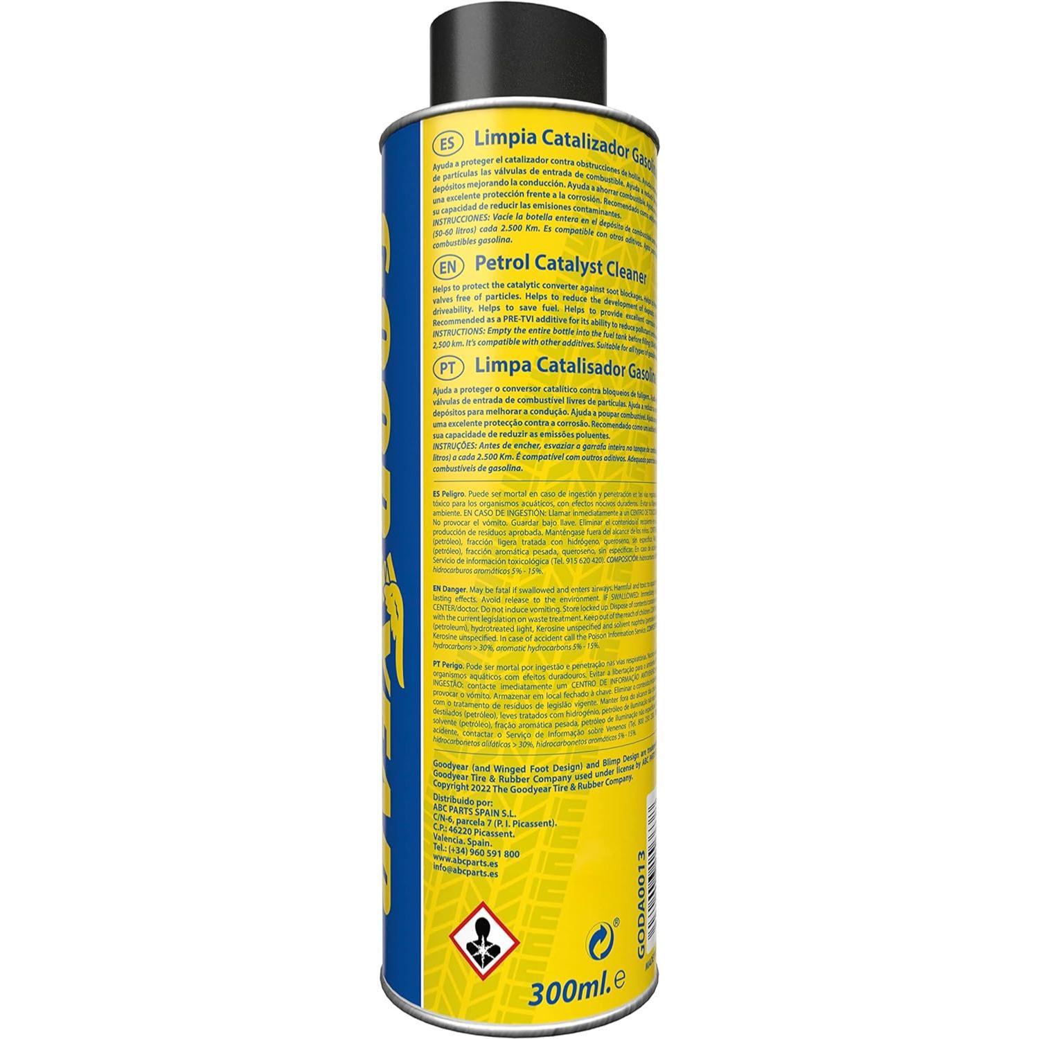 Additif pour carburant essence 300ml Goodyear Petrol Catalyst Cleaner protège le convertisseur catalytique contre les blocages par la suie.