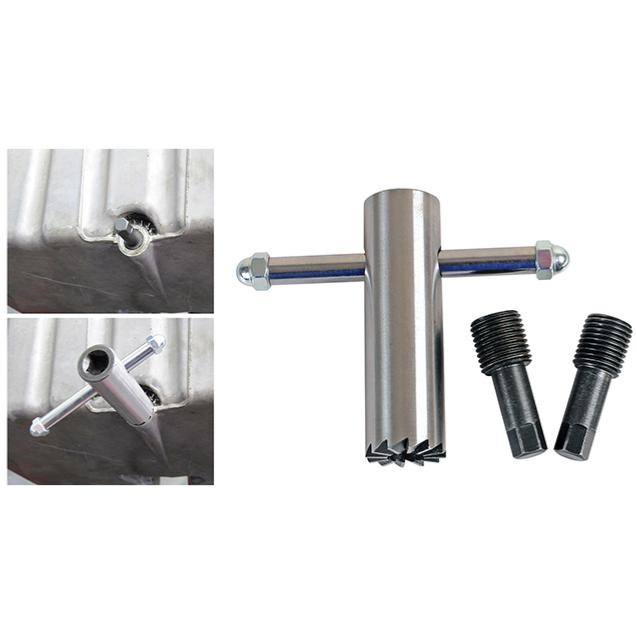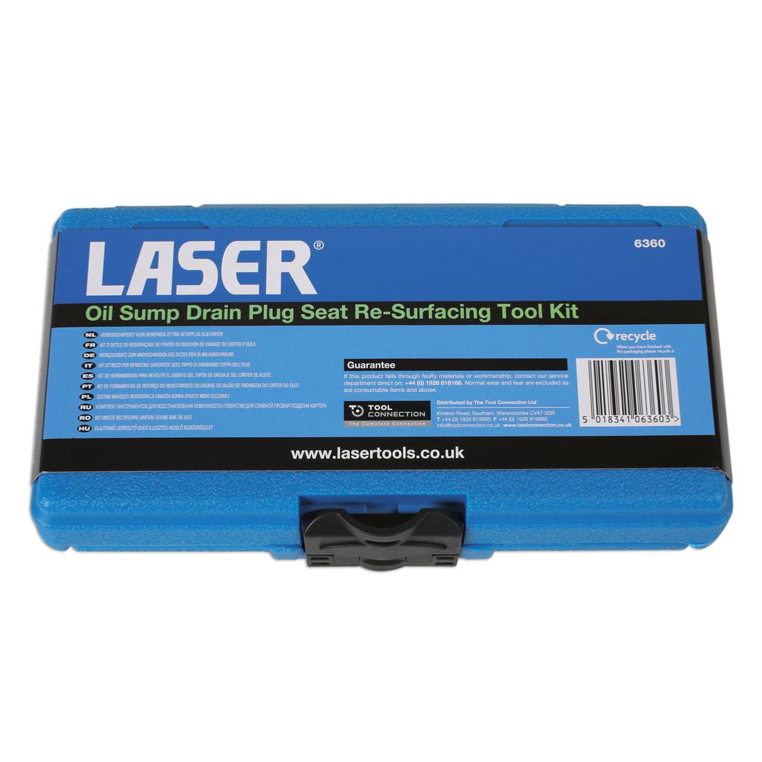 En cas de fuite au niveau du bouchon de vidange et qu'une nouvelle rondelle ne suffit pas à la réparer, il peut être nécessaire de refaire le joint. Cette opération ne prend que quelques secondes grâce au kit de resurfaçage de bouchon de vidange Laser Tools.