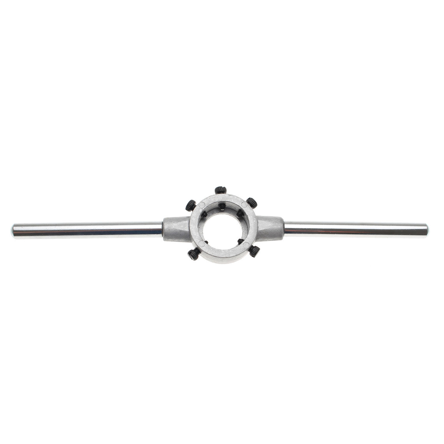 Utilisez votre porte filière en faisant un demi-tour en avant puis un quart de tour en arrière et ceci jusqu'à ce que vous ayez fait toute la longueur de votre filetage. Ce mouvement permettra de casser le copeau de métal que vous venez de créer, vous assurant qu'il ne viendra pas gêner la réalisation du filetage suivant.